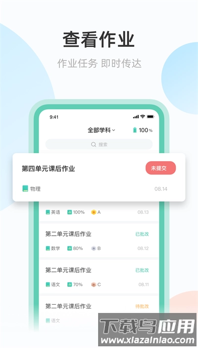 1.作业查看:可在线浏览各学科发布的作业任务,以便第一时间知晓作业的具体内容和相关要求;