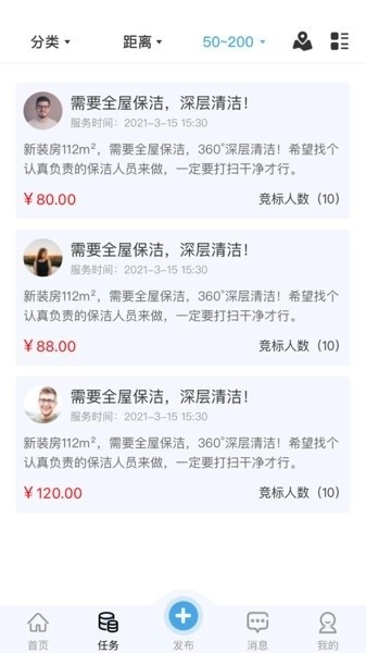 采用个人与个人之间的服务对接模式,让闲置技能转化为收益的过程更加便捷;任务大厅会实时展示周边的需求信息,并且支持根据距离来设定接单的范围;服务结束后,双方可以进行互相评价,以此来建立诚信的服务体系。