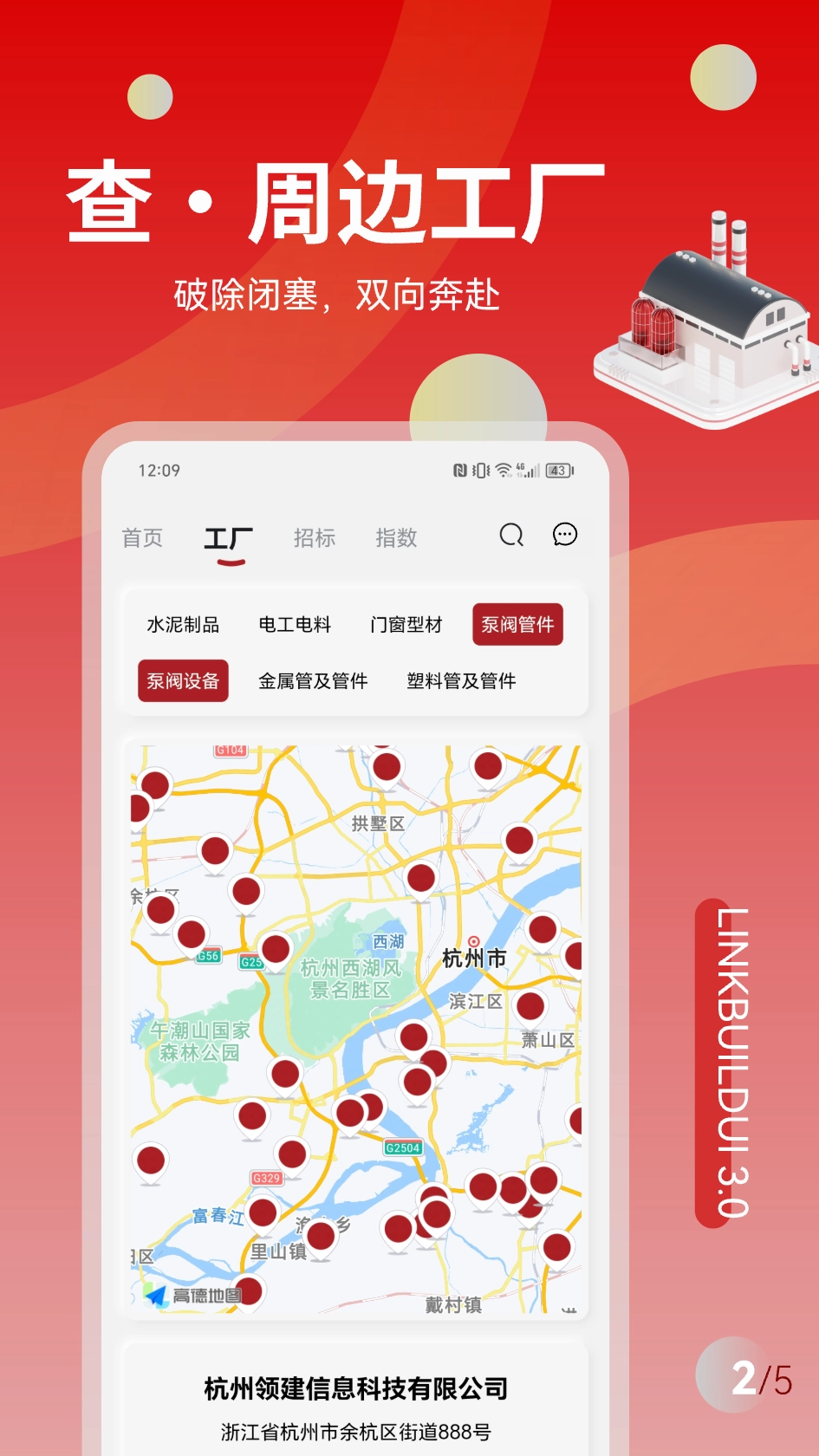 2、例如进入找工厂界面,对建筑行业各类专业工厂资源展开查找;