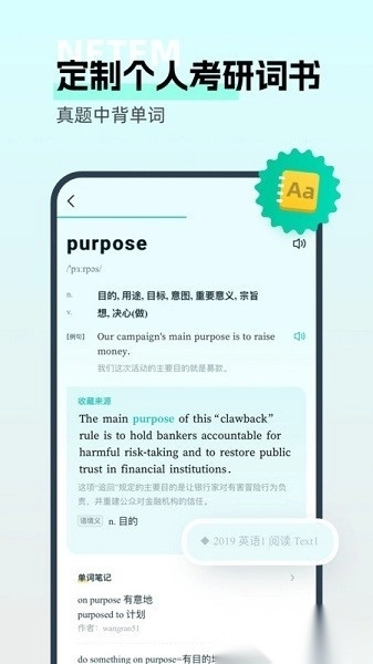 - 每日推送5句重点长难句,支持语音跟读评测。