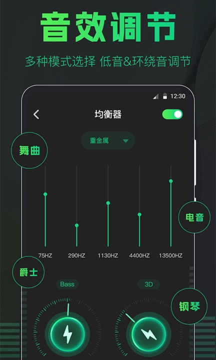 拥有20余种专业预设音效,同时配备五频段的音乐均衡调节功能。