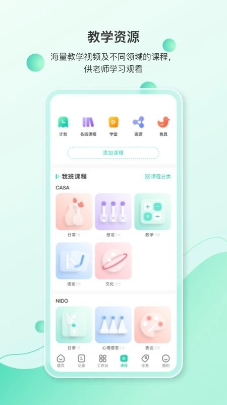 备课系统运用树状思维导图形式,知识点可自动关联蒙特梭利教具库,还能一键生成标准化的教案模板。