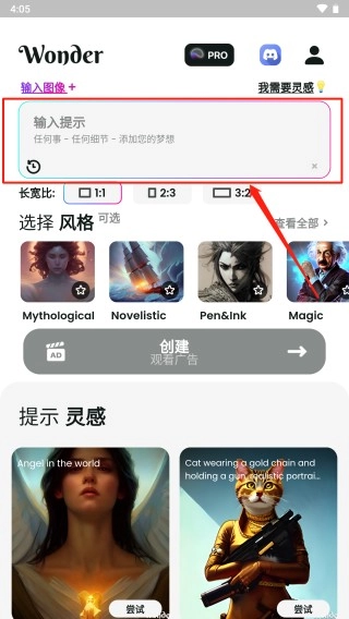 1、别的咱先不说,还是得先安装,进入首页之后我们点击下图的方框,在里面输入我们需要ai作画的主题发挥自己的想象力哦。
