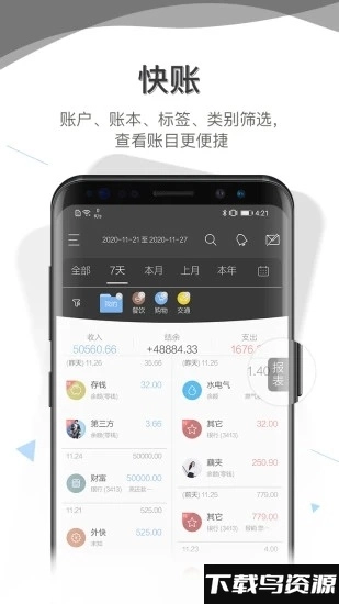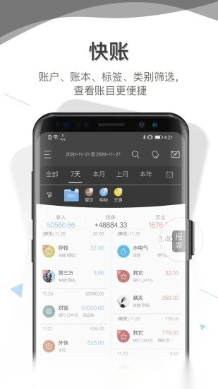 ——个人财务小管家,帮你清晰打理收支;账目分类一目了然,时间段清晰明确,能轻松挑选收入与支出项目,饼图报表直观展示收支情况。