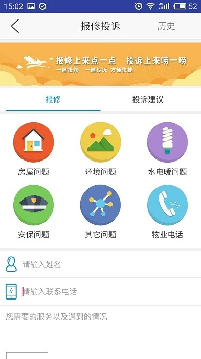4、线上投诉建议平台,物业工作人员会第一时间处理并反馈相关情况;