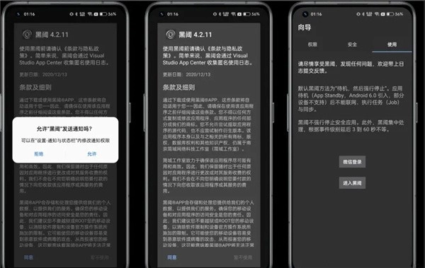 ②同意隐私政策-开始使用黑阈;