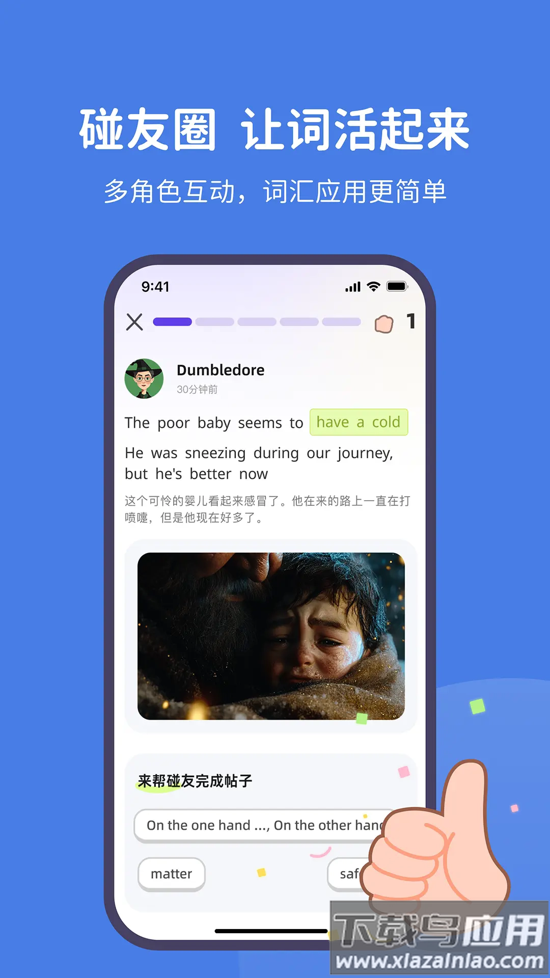 4、互动社区:用户能够创建学习小组,加入单词接龙之类的社交化学习活动;