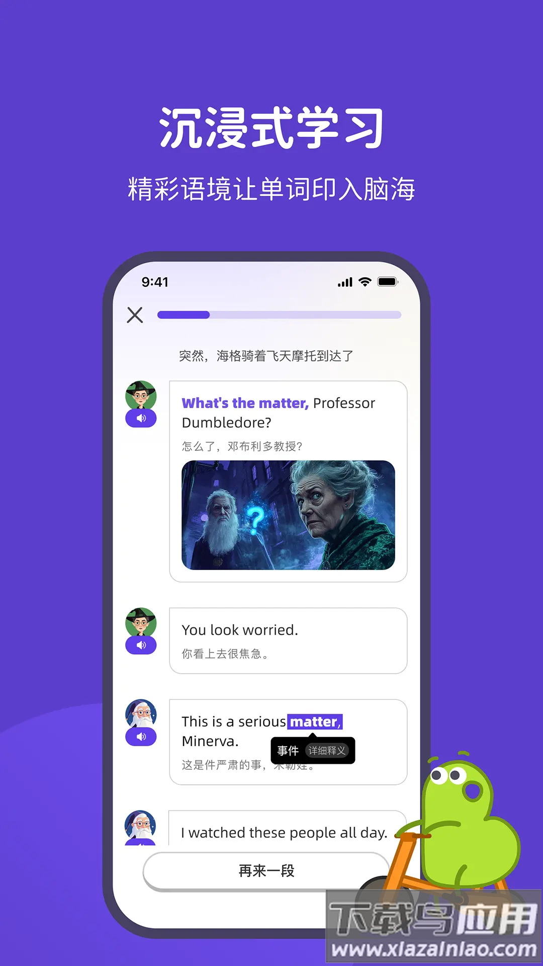 这并非一款普通的单词学习软件,而是一次充满趣味的语言探索之旅。在精心设计的虚拟故事线里,用户可以化身为见习魔法师、星际翻译官等独特角色,通过完成一系列剧情任务来解锁新的单词。所有词汇都巧妙且自然地融入到对话与情节之中,再搭配上原创的插画和沉浸式的背景音乐,帮助用户构建起立体的记忆网络。每天只需投入15分钟进行学习,就能轻松积累20到30个高频词汇,坚持一年便可突破万词大关。