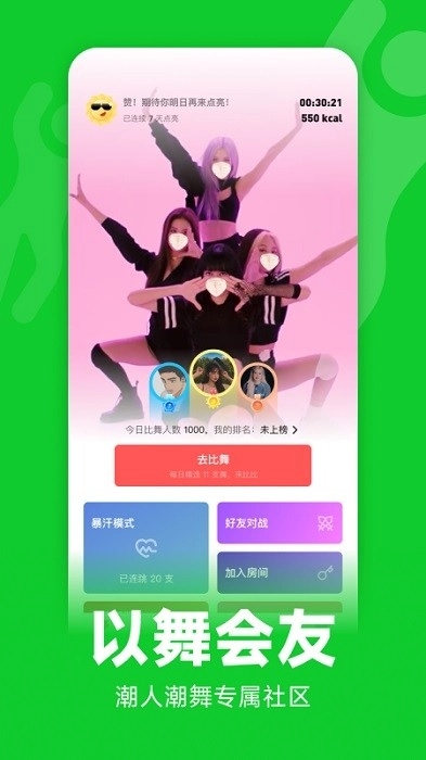 打开应用挑选喜欢的舞种,系统会自动匹配并推荐合适的课程;戴上智能手环就能同步心率信息,让消耗统计更精准;完成每日任务来积累舞力值,就能兑换限量的明星教学课程;创建舞团后邀请好友加入,一起完成每周的挑战任务。