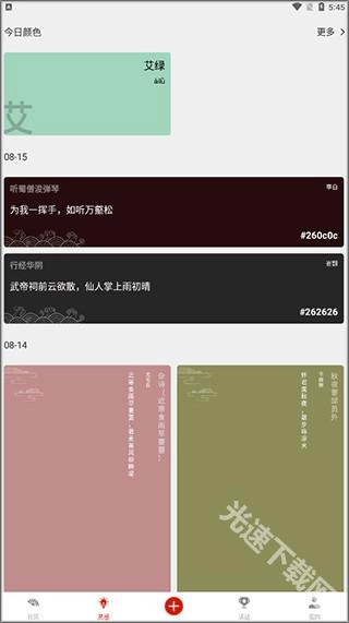 3、点击灵感界面,系统会为你推送今日推荐的颜色,助你获取创作灵感。