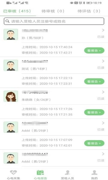 报告管理板块具备多条件筛选功能,能够依据日期、患者姓名、异常等级进行快速定位。