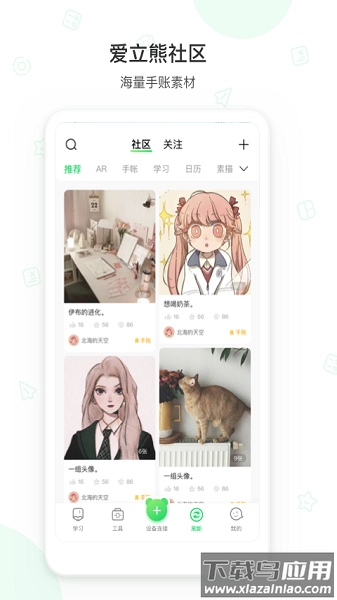 2. 素材社区包含表情包、学科笔记等实用资源;