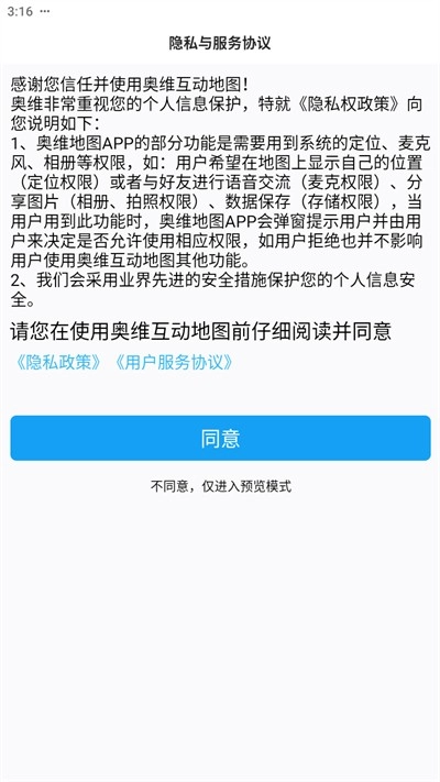 1、首先打开指定的软件,进入后会弹出用户协议,点击同意即可进入;