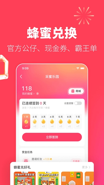 积分兑换专区,用消费累积的蜂蜜兑换超值礼品;