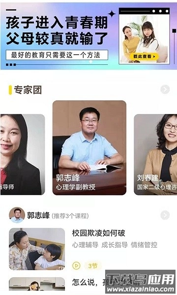 这是一款专门面向家长打造的家庭教育辅助工具。该产品借助多维度知识内容供给、定制化家庭教育方案制定以及专家在线答疑解惑等方式,助力家长精准把握家庭教育的核心要义与相关知识,同时掌握切实可行的操作方法。各项功能模块有序整合在首页、我的专家、成长计划和个人中心等界面里。