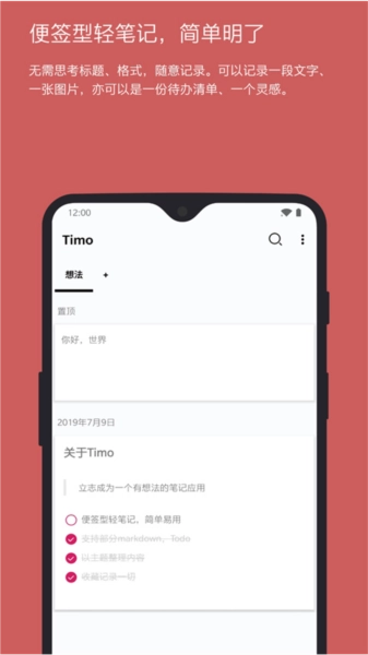 Timo是一款便捷好用的笔记软件,采用先进的加密技术和多样的输入方式为用户提供了一个随时捕捉灵感的优秀渠道。用户不仅可以随时记录自己的日程安排,还可以对笔记进行分类管理,让日常浏览笔记更方便。