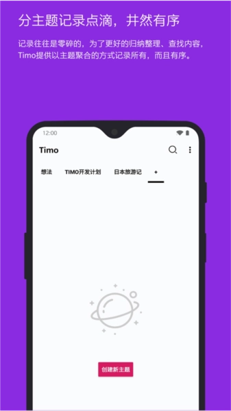 记录往往是零碎的。为了更好地对内容进行总结和整理,找到内容,Timo提供了一种通过主题聚合来记录内容的方式。