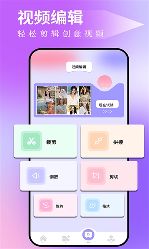 1、整合了裁剪、滤镜、贴纸、字幕、配音、录音、倒放、旋转等各类图片与视频编辑工具。