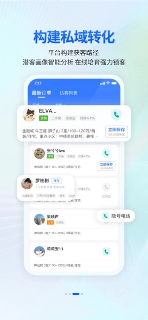 整合微信、抖音等多个平台的客户线索,并对购房意向等级进行智能分析。