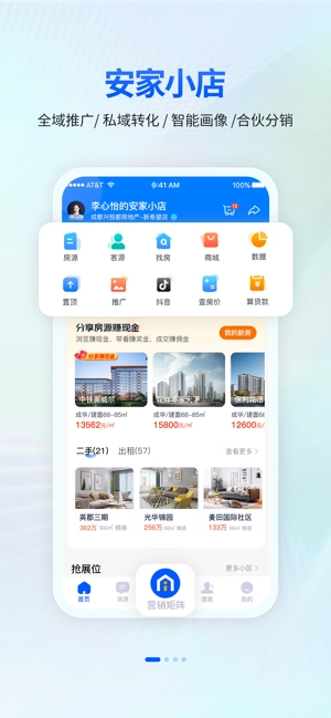 安家小店是一款为房产经纪人量身打造的智能营销工具,它整合了房源展示、客户管理、线上推广等核心功能。平台拥有全国365个城市的真实房源数据,涵盖新房、二手房、租赁等多种类型,每天更新上万条房源信息;借助VR看房、视频选房等创新功能优化看房体验,搭配电话加密、在线聊天保障交易安全。智能算法能够精准分析客户需求,提供定制化服务方案,还有佣金奖励、分销裂变等激励机制,助力经纪人高效拓展客户。想体验这款房产营销神器,就快来试试吧!
