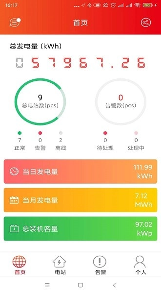 晶太阳光伏发是专为光伏电站业主打造的智能监控工具,业主通过手机就能实时了解电站的运行情况。这款软件具备发电数据追踪、故障预警推送、远程参数配置等核心功能,在突发停电的情况下,还能帮助用户快速联系到运维团队;流量充值服务可以保证监控不中断,扫码录入设备信息则简化了操作步骤。不管是查看每日发电曲线,还是对比历史能效数据,都能清晰展示电站的健康状态,助力用户提高运维效率。如果想体验便捷的光伏管理服务,欢迎使用晶太阳光伏发。