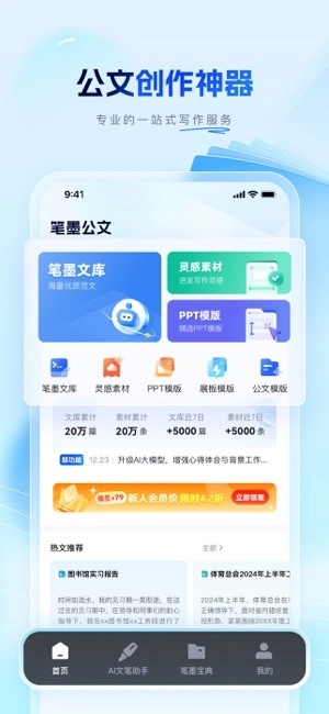 在当下快节奏的工作与学习场景里,高效且专业的写作工具愈发关键。笔墨写作的最新版本正是针对这一需求打造的,它融入了智能AI技术,能为用户提供强大的公文撰写和文本处理能力。不管是文本审核校对、内容优化润色,还是调用丰富的范文素材库,都可以满足不同写作场景下的各类需求。这款应用尤其适合公务员、职场人士以及在校大学生使用,助力用户轻松完成各类写作任务,有效提升工作效率与文章品质。如果你正需要一款好用的写作帮手,不妨来试试它。