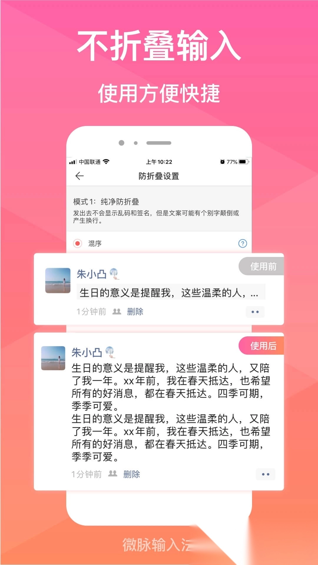 1.独创朋友圈文案防折叠技术,长文展示更完整;