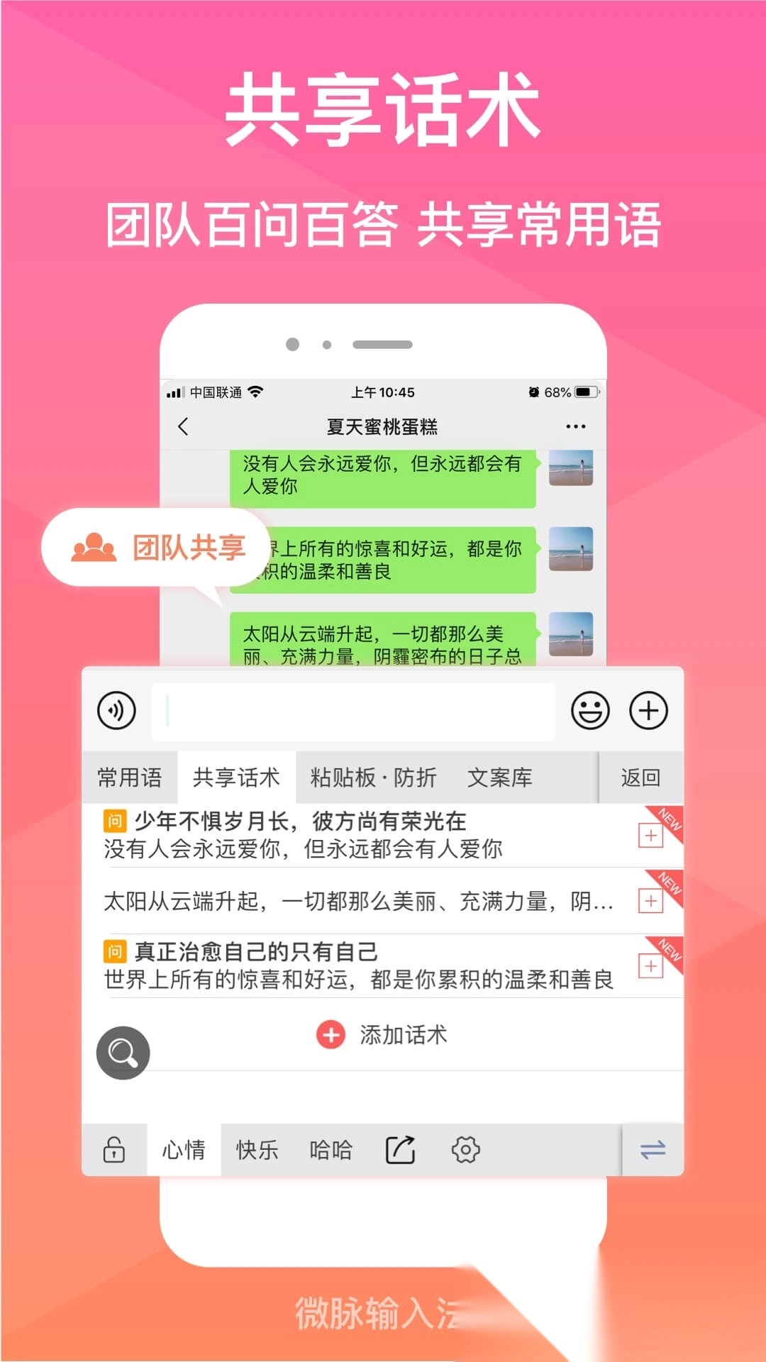2.云端共享5000+微商话术模板,支持自定义常用语;