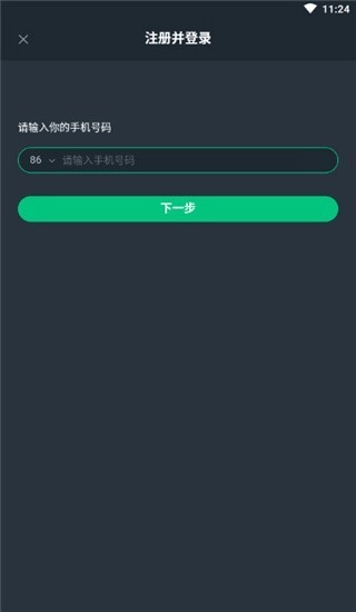 2、进入我的界面之后需要玩家进行账号注册,这里可以使用手机号获取验证码的方式进行注册登录。