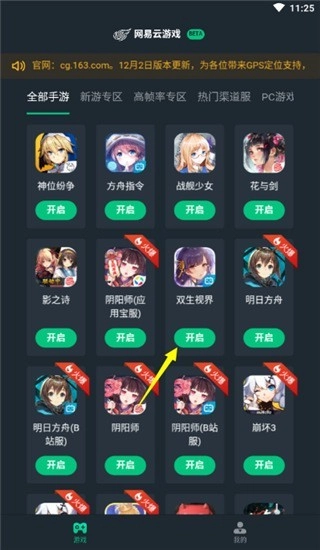 3、登录成功之后返回游戏界面,点击想要玩的游戏,点击下方的开启即可无需直接进入游戏。
