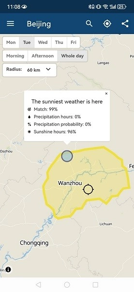where2go算法能够推荐周边的晴朗区域,对于自驾游还可以智能规划出最佳的出行路线。