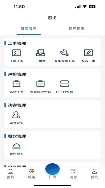 食堂订餐、会议室调度、设备报修、工单分配;