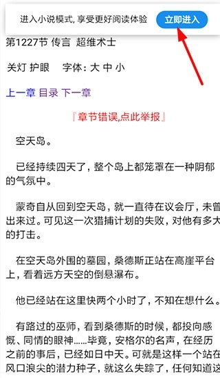 3、接下来在进入了小说的阅读页面后,大家就可以通过上方的“立即进入”按钮,直接点击进入小说模式了。