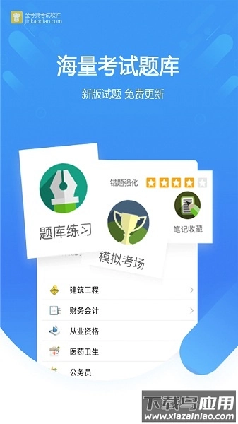 这款软件严格遵循最新考试大纲进行编写,配备了章节练习题、往年真题以及预测模拟题等多种学习资料;所有内容不仅能永久使用,还会持续免费更新。其覆盖的考试领域十分广泛,包含一级建造师、二级建造师、造价工程师、环境影响评价工程师、电气工程师、安全工程师、监理工程师、执业医师、执业药师、初/中/高级会计职称考试、公务员考试、研究生考试、心理咨询师以及国家统一法律职业资格考试等各类考试题库。