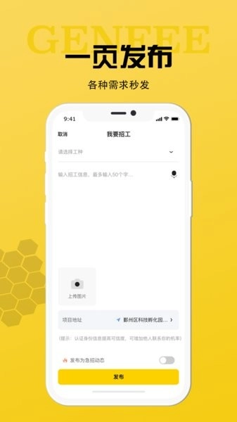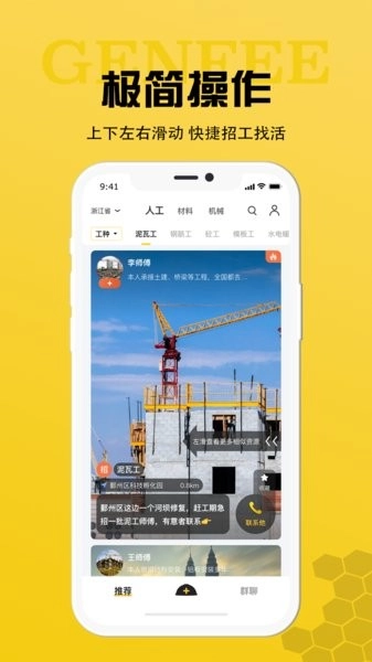 工蜂作为建筑工程行业的资源对接平台,整合了工人、材料、机械等多维度服务资源;用户既能直接对接项目经理、工程师等技术管理人才,也能快速匹配合适的各类技术工人;借助精准定位技术,用户可实时掌握周边工程资源动态,发布需求后能第一时间收到反馈,平台所有信息真实透明,助力用户高效达成项目对接目标。