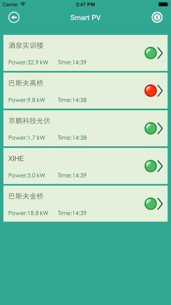 电站状态看板采用红、黄、绿三色来区分正常、预警和故障这三种状态。