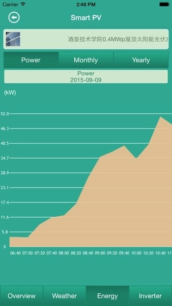 气象数据与国家气象局接口实现对接,每10分钟对辐照度等专业参数进行更新。