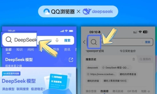 3、在移动端,用户只需点击搜索框左侧的放大镜图标并选择“DeepSeek模型”,即可直达相关搜索结果。