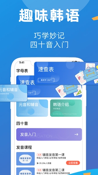 哆啦韩语是一款面向韩语学习者的手机应用,专为他们打造系统化的学习课程,从基础发音到日常对话都有覆盖。不管是零基础入门,还是想进一步提升口语水平,这款软件都能适配不同需求。借助真人教学视频和互动式练习,用户可以轻松学会标准的首尔发音,掌握实用的对话场景。它尤其适合打算去韩国留学、工作或旅游的人,能有效帮助解决语言沟通上的难题。课程内容包含韩语四十音、常用表达、文化常识等,学习进度可以自由安排。界面设计简洁,操作起来很方便,每天只需花一点时间学习就能看到进步。对韩语感兴趣的朋友不妨试试这款应用。