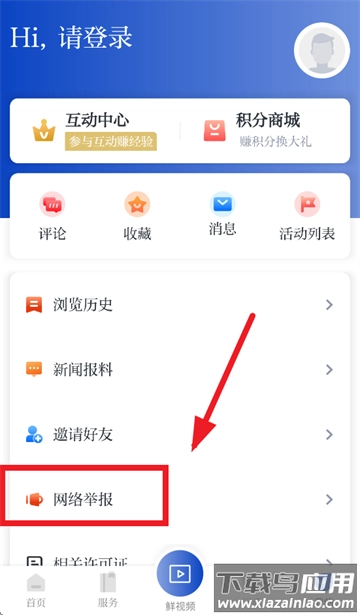 在我的界面选择网络举报