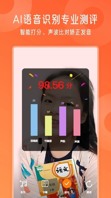 录音时会自动匹配契合意境的背景乐,让语言更具感染力;课文解析部分由特级教师精心编写,还会重点标注容易出错的字词;支持离线使用朗读素材,不管何时何地都能开启学习模式;通过社交分享功能,可以把作品生成专属海报并保存到手机相册里。