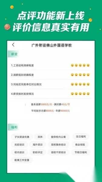 2. 数据透明:所有学校均已通过资质认证,其展示的薪资待遇均为真实信息。