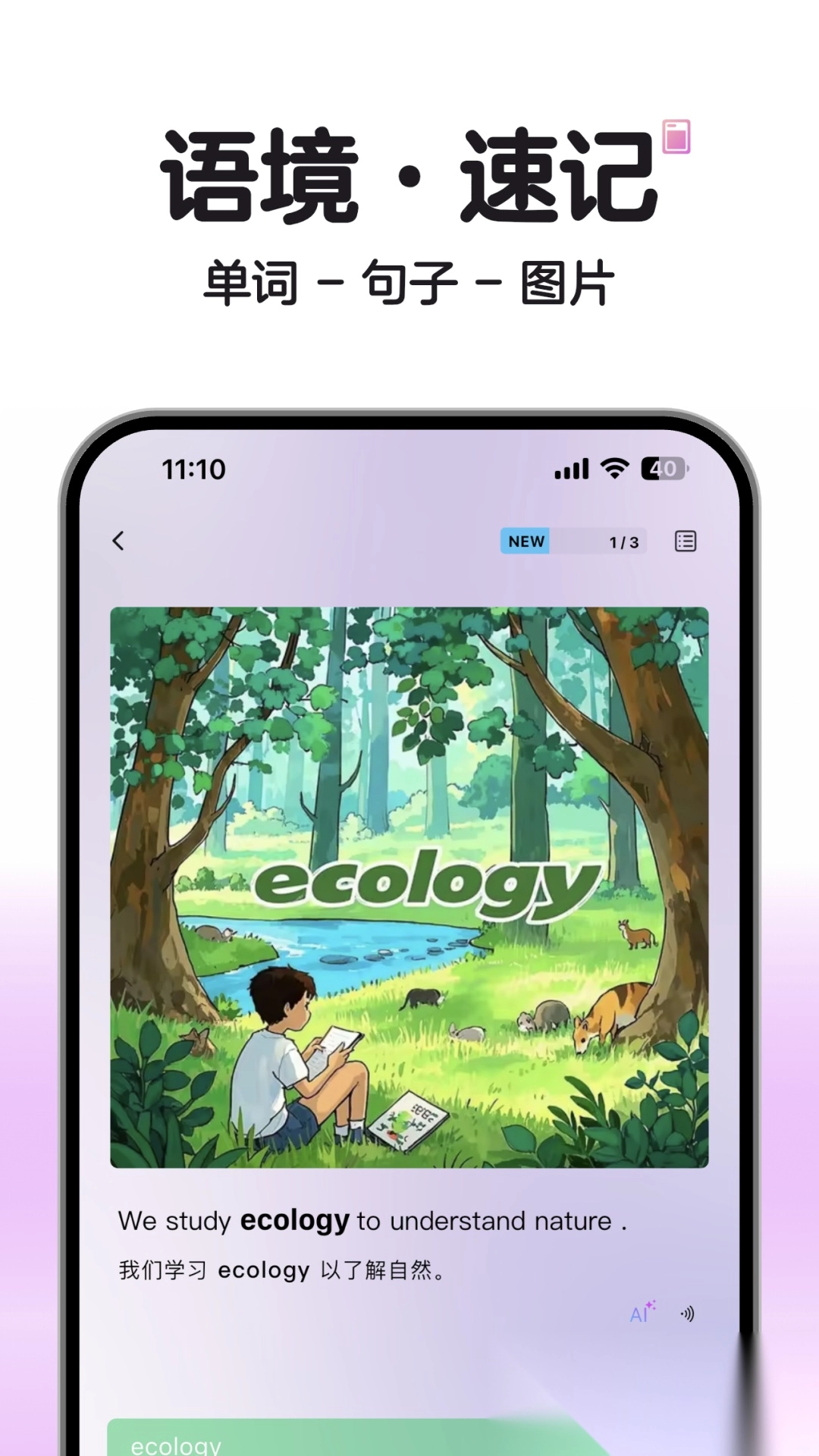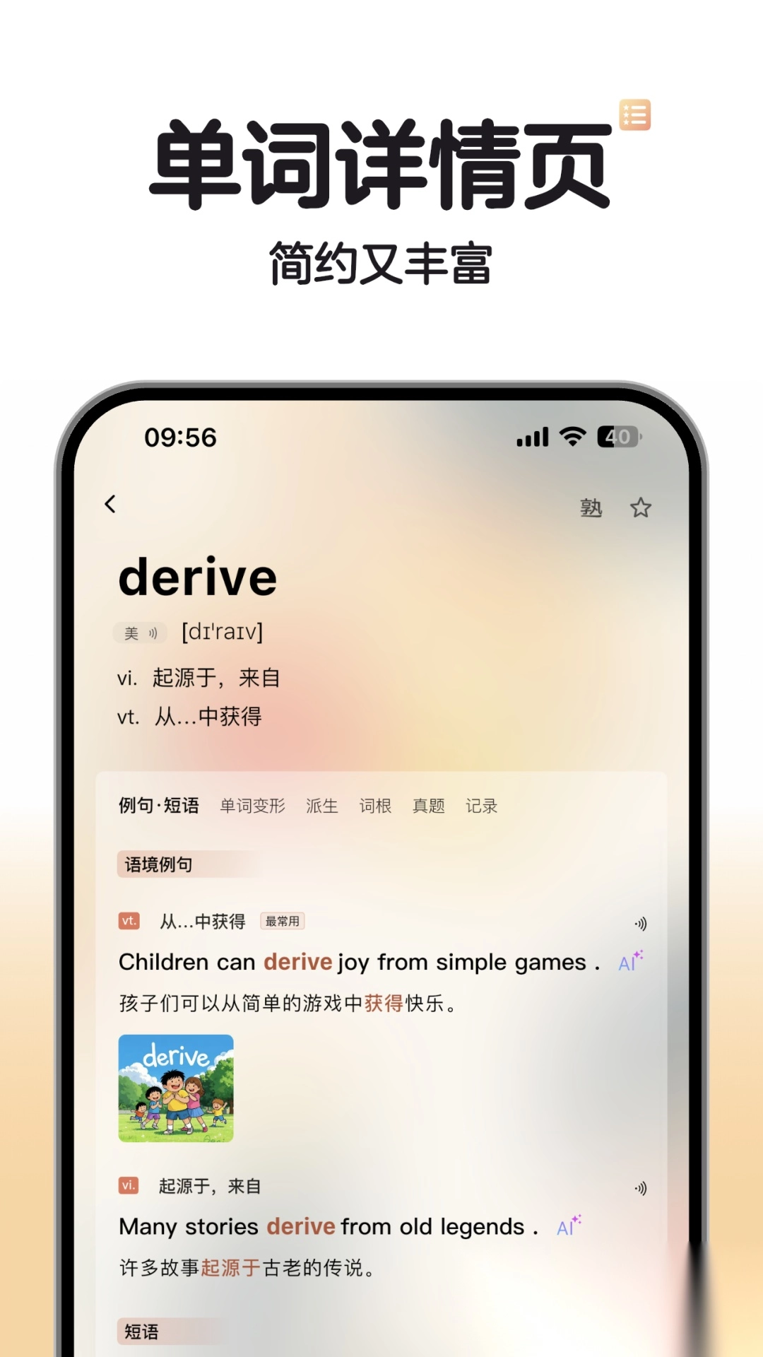 我们推出了独创的单词播放器功能,能实现背景循环播放;每个单词都搭配了情景短剧与美图例句,借助视觉联想来加深记忆;AI助手可随时为你解答单词相关疑问,详情页还提供词义解析以及相近词的对比;平台每日更新实用短句,同时具备拍照翻译功能,充分满足碎片化学习的需求。