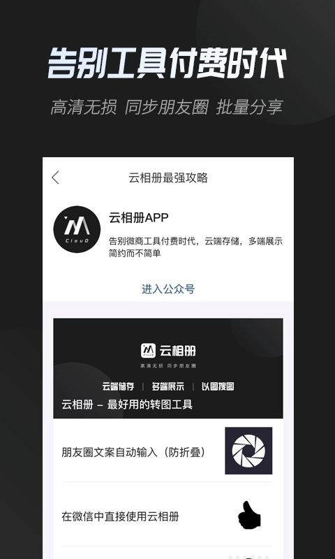 上传至云相册的素材会生成专属分享链接,团队成员只需关注对应账号就能获取所有内容,并且支持上百人同时进行批量转发操作。