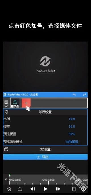 2、点击红色“+”号创建图层并导入素材进行更多的编辑