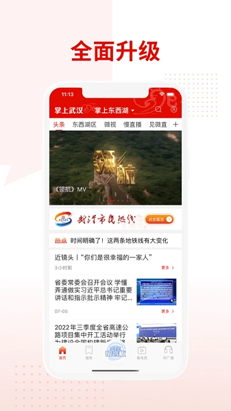新上线的视频号将推送汉派美食探店、东湖骑行指南等原创内容;电视观看新增画质选择功能,流量模式下会自动切换至标清;投诉进度目前通过短信告知,处理结果还会附上现场整改的照片。