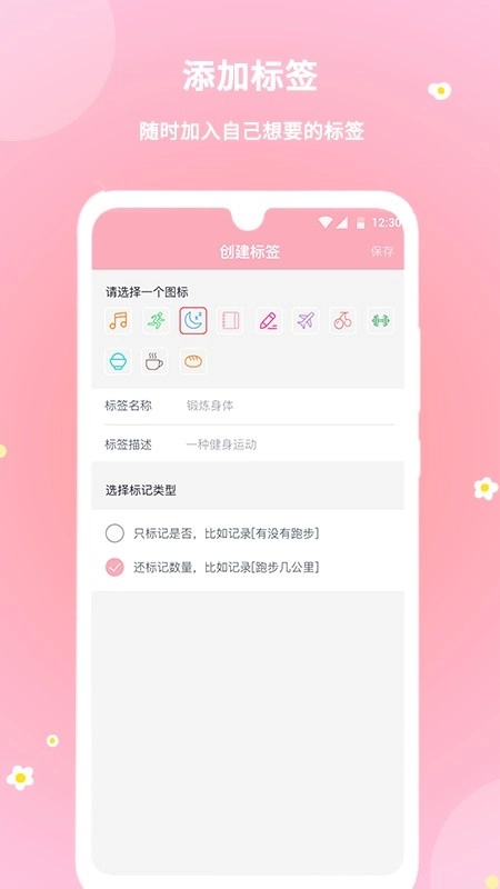 记录体温、痛经程度等20多项体征数据,生成专属健康报告;
