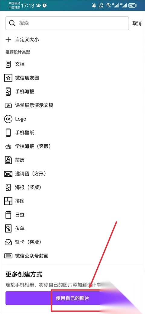2、进入后点击下方的使用自己的照片