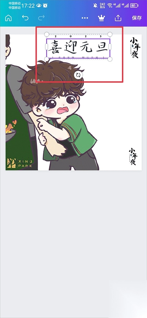3、点击后就可以在图片中看到该文字了,然后点击文字可以调节大小和移动位置