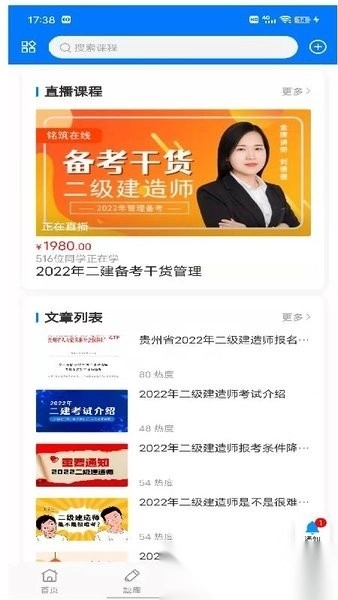 铭筑在线致力于建筑领域职业资格培训,业务范围包含一级建造师、二级建造师等当下热门的考试方向。平台配备专业讲师的视频课程,同时提供大量题库资源供学员练习,助力用户进行系统性复习,找出知识薄弱点并加以弥补,从而增强通过考试的信心。